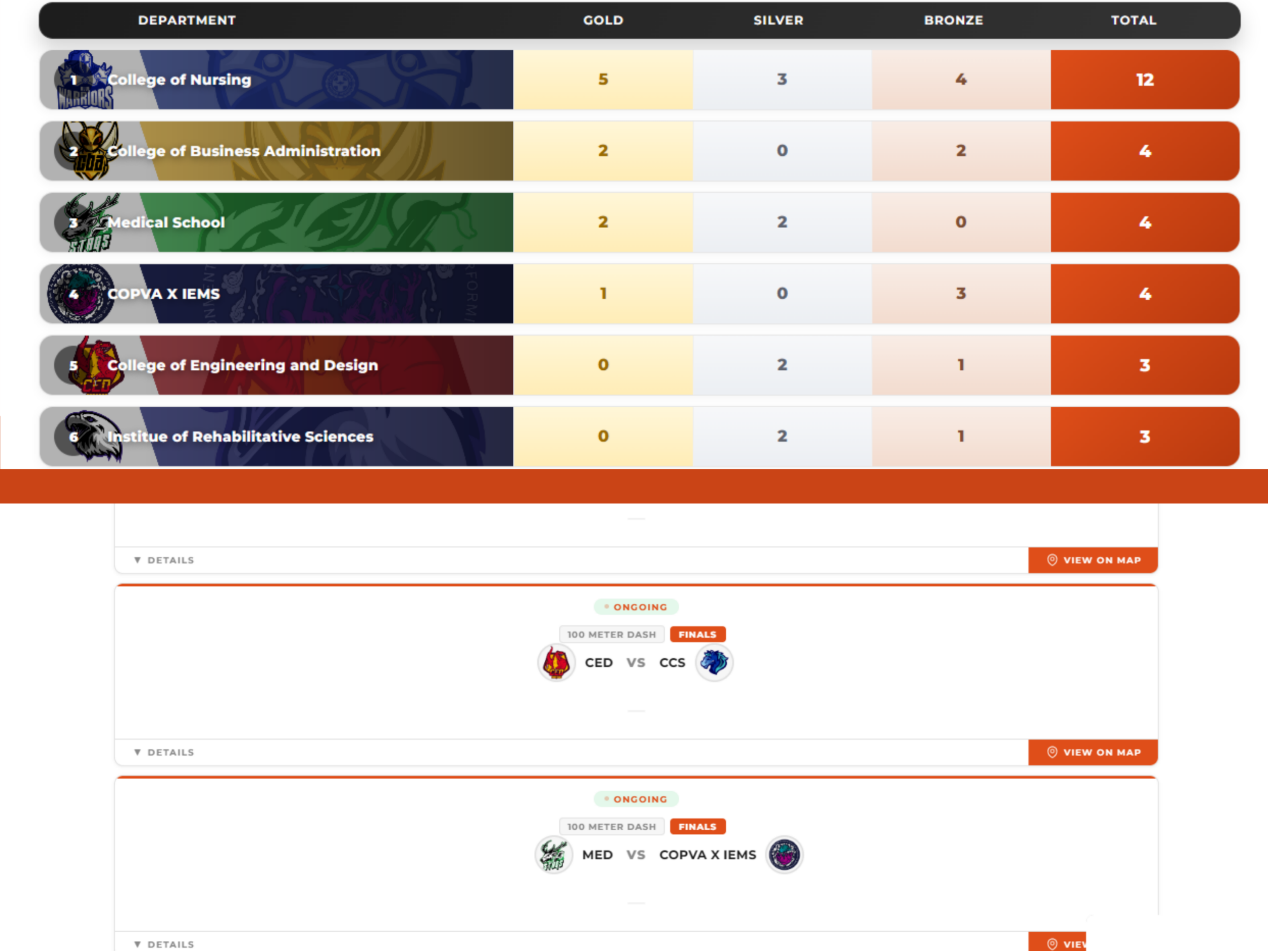 Keep track of every game, bracket progress, and department standings throughout the tournament. Updates are provided after matches conclude.